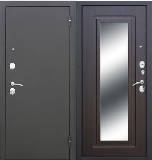 Наружное полимерно-порошковое покрытие цвет медный антик и черный муар позволяет использовать данную модель двери в качестве входной с выходом на улицу (при наличии козырька). Наличие внутренних накладок из МДФ 8 мм - 10 мм (цвет венге, белый ясень, венге тобако, дуб сонома, рустикальный дуб и царговые накладки - венге, лиственница беж) позволят покупателям подобрать дверь под интерьер своего помещения.